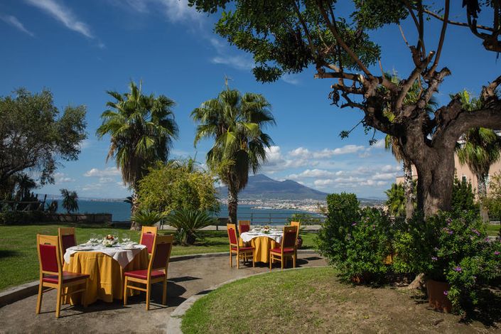 Affacciati sul Vesuvio e sul mare, sarà possibile gustare le eccellenze culinarie tipiche del territorio, in un ambiente romantico e raffinato decorato con peculiari affreschi murali.